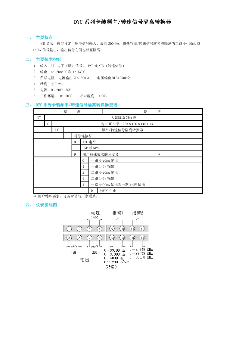 DYC系列卡装频率/转速信号隔离转换器