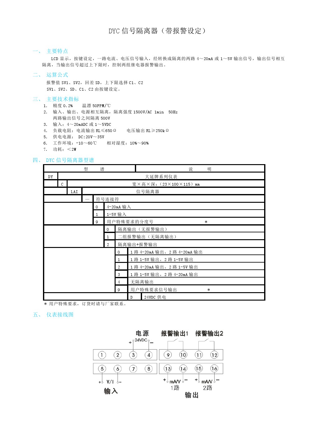 DYC信号隔离器(带报警设定)