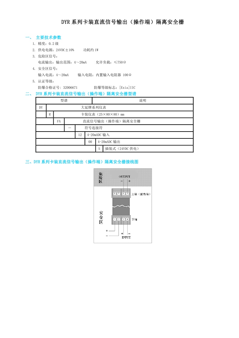 DYR系列卡装直流信号输入(检测端)隔离安全栅