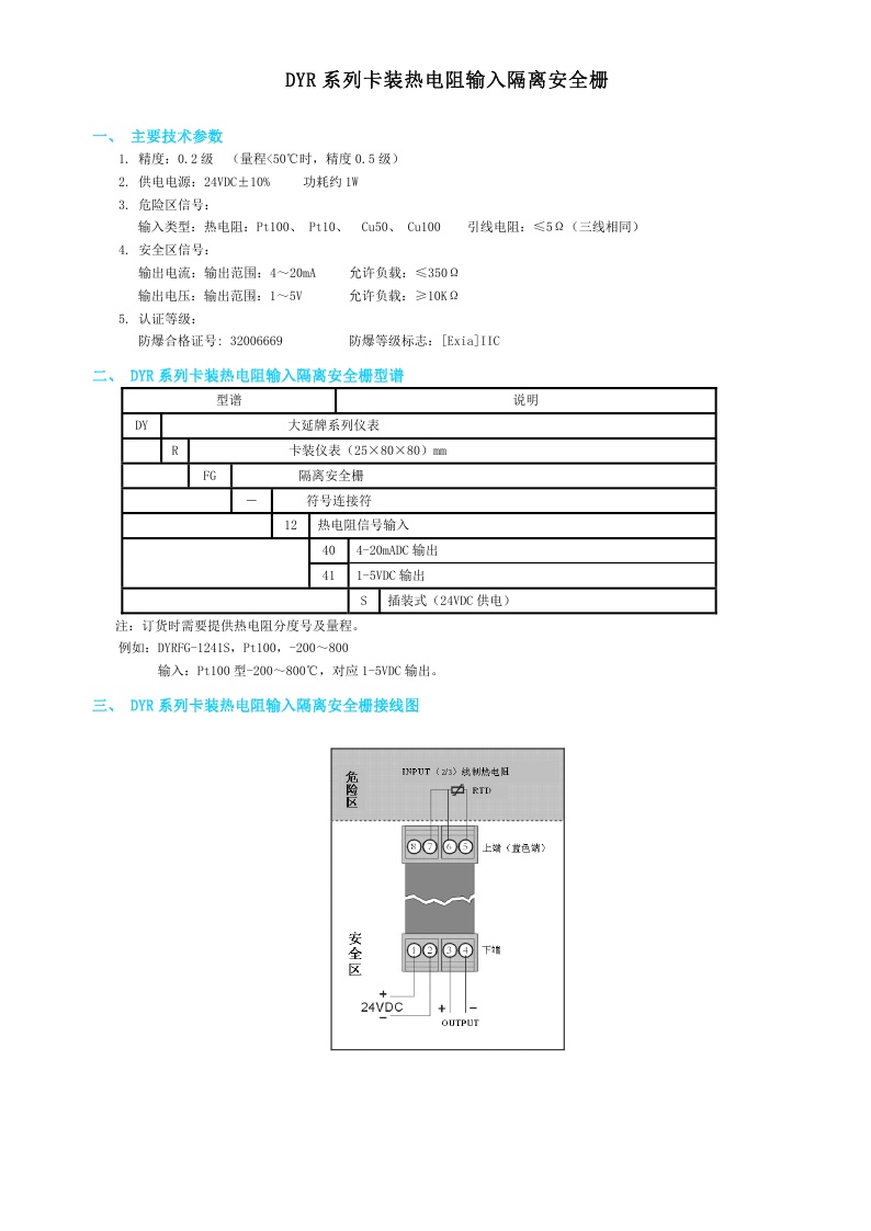 DYR系列卡装热电阻输入隔离安全栅