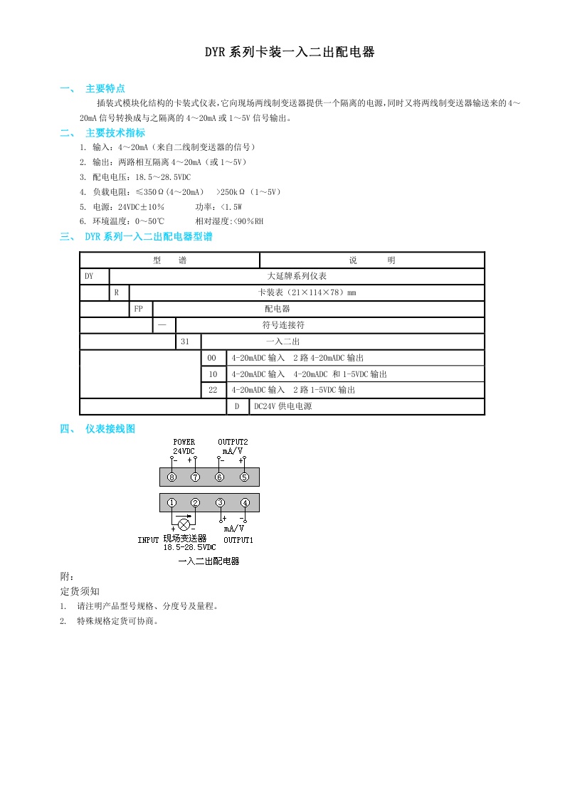 DYR系列卡装一入一出配电器