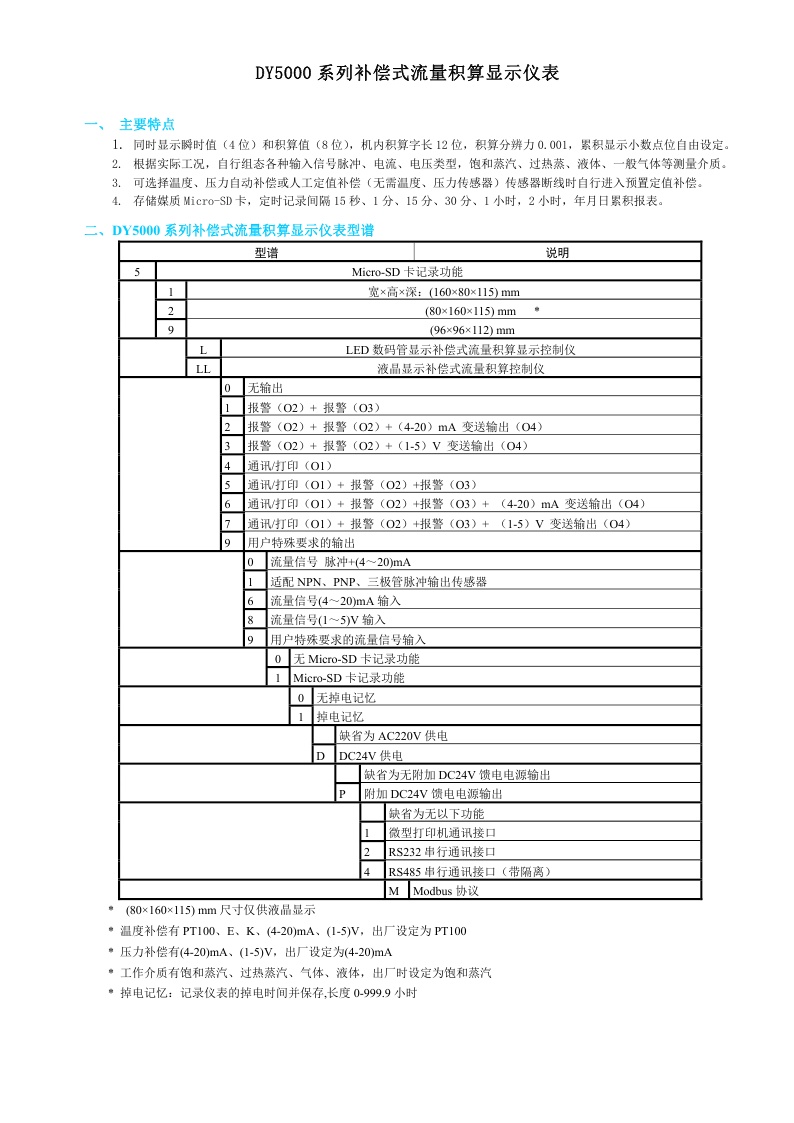 DY5000(L)系列补偿式流量积算显示仪表